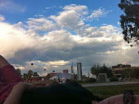 Aunt Amy taking a rest on the mall on a beautiful afternoon.